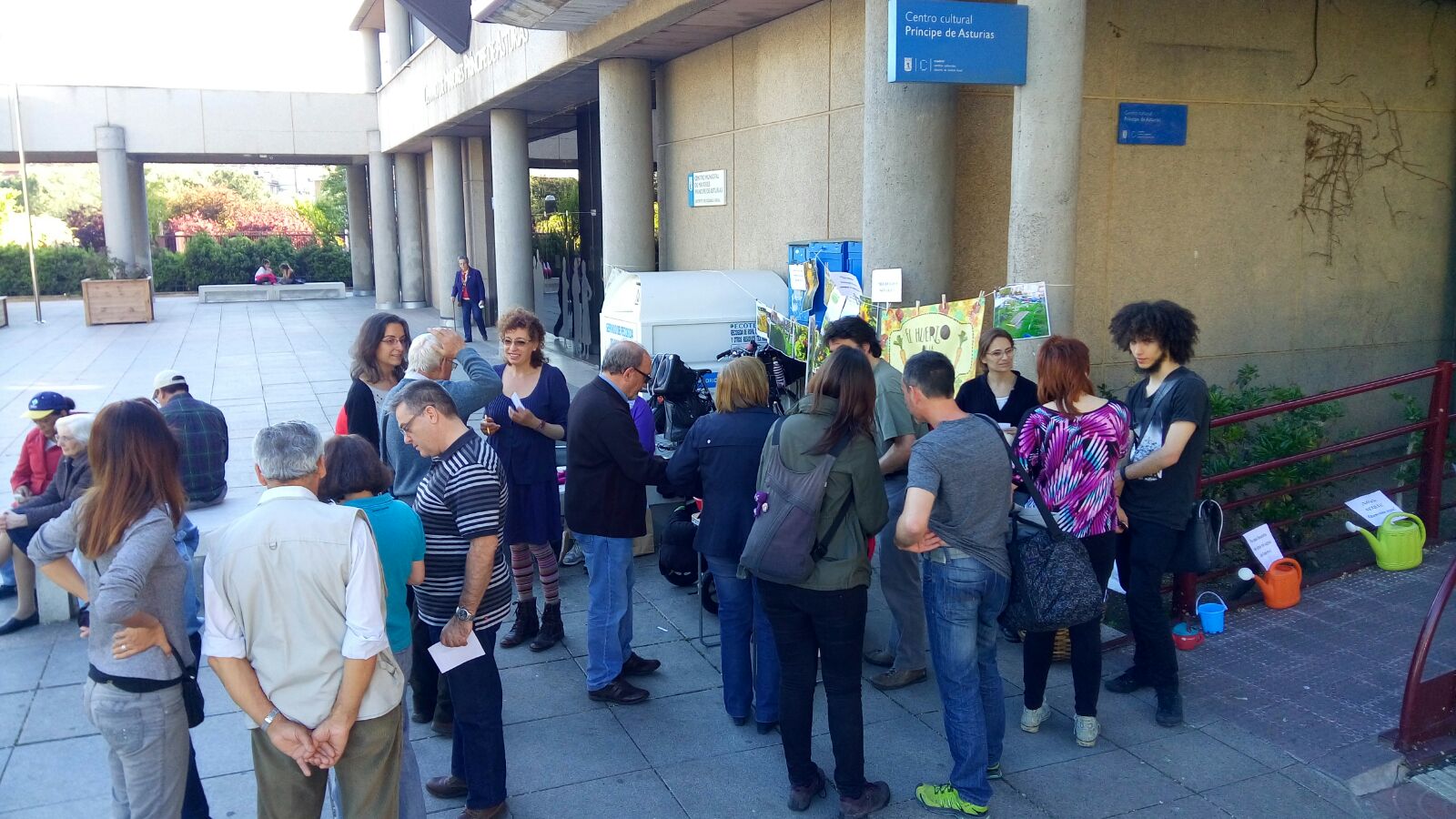 Ayer, martes 3 de mayo, tuvo lugar, frente a la Junta de Ciudad Lineal, la segunda acción a favor del mantenimiento del Huerto de La Alegría.