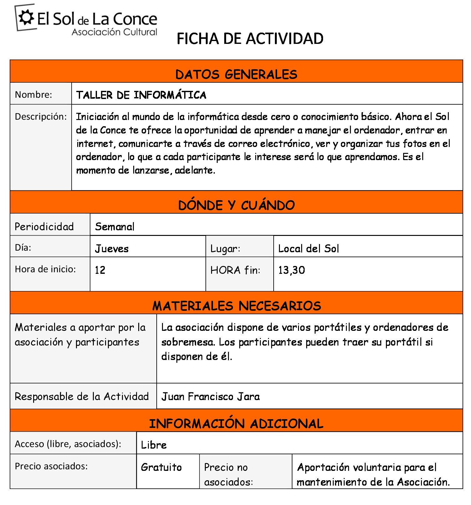 Nuevas actividades en El Sol de la Conce: Taller de informática y taller de fotografía