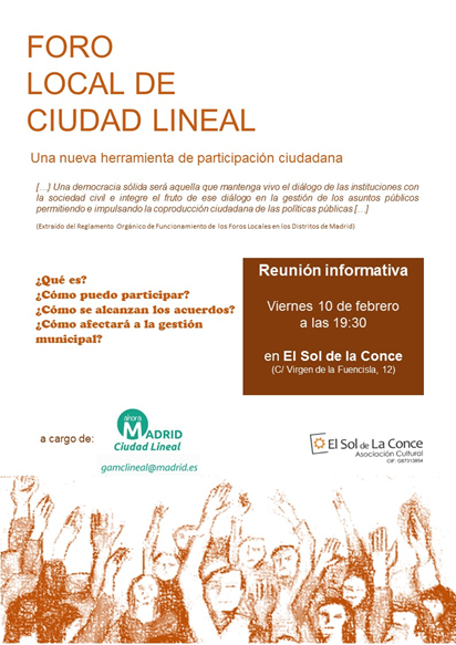 La creación de los diferentes Foros Locales (1 por distrito) pretende facilitar la vertebración de la sociedad mediante la generación de un espacio público de encuentro, diálogo, deliberación, concertación, propuesta y evaluación de políticas públicas en el que la ciudadanía a título individual y las entidades, reflexionen y trabajen de forma conjunta para definir propuestas de diseño, gestión y evaluación de políticas públicas municipales en diálogo y concertación con la administración pública.