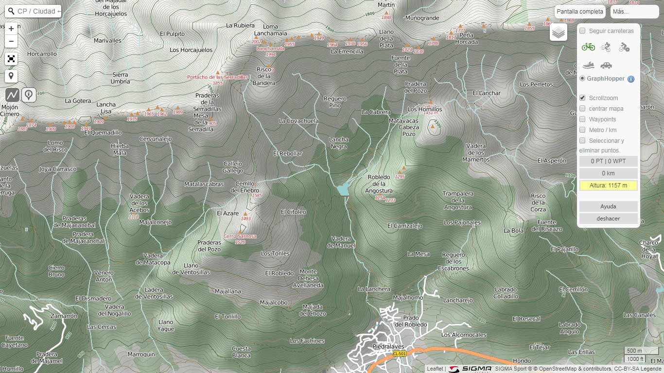 Itinerario: Dejando el coche en el parking de la Presa del Horcajo (1005 m), cruzamos al otro lado y empezamos a subir por el bosque por un camino estrecho. Después de 20 minutos llegamos a una pista forestal. La cogemos hacía la izquierda y la seguimos durante 30 minutos para llegar al punto de ascensión. Otra vez cogemos un camino que sube primero por el bosque de pinos y luego por piornos y helechos para llegar a las primeras praderas,  La Pradera del Pozo (donde antiguamente tenía un pozo de nieve para almacenar carne para los habitantes de Piedralaves). Aquí veremos el pico de la Sarnosa a nuestra izquierda, pero subiremos hacía la derecha por un bosque de alcornoques centenarios hacia la cuerda. Al llegar arriba cruzamos al otro lado y ladeamos por caminos bien marcados con vistos al otro lado de la Sierra. La subida se vuelve más rocosa con menos vegetación pero es fácil de seguir y continuamos hasta llegar a nuestra meta, unas praderas grandes de alta montaña con riachuelos y pequeñas caídas de agua donde emanan los ríos principales de la zona y donde paramos a comer. Para los que quieren tener vistas al otro lado de la sierra, pueden subir al Portacho de la Serradilla (1855m altitud) a unos 75 m más arriba. Aquí descansaremos antes de bajar, por el mismo camino hasta la Pradera del Pozo y luego cogeremos otro camino entre pinos en dirección hacia la presa.