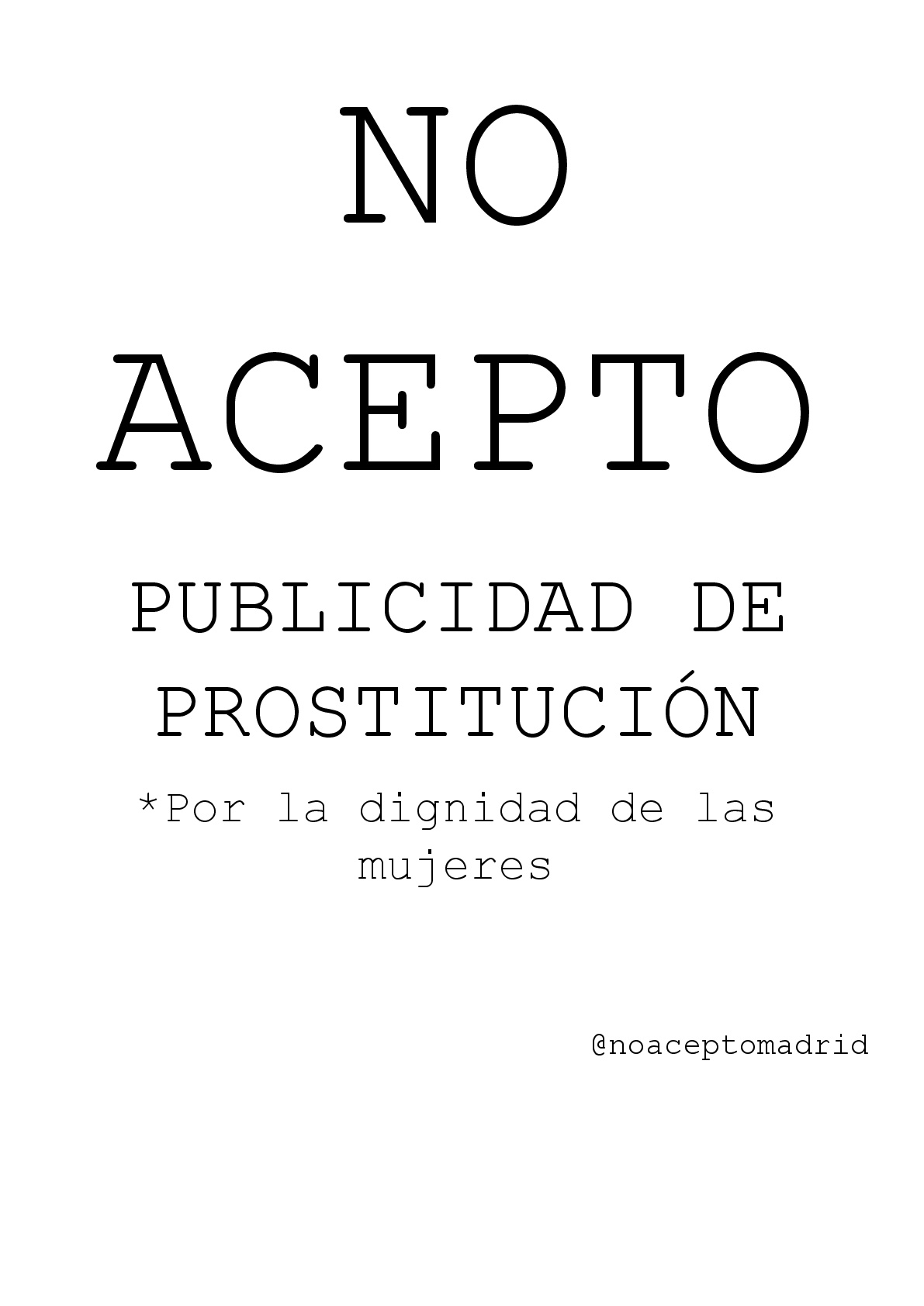 La campaña consiste en dar visibilidad a este problema recogiendo la publicidad que nos encontramos en los coches diariamente, mostrando en nuestros coches que no aceptamos esta publicidad (Cartel NO ACEPTO ) y firmando la petición en Change.org (No acepto publicidad de prostitución). Además de difundiendo en medios de comunicación y redes sociales el propio avance de la campaña.