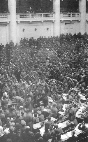 Octubre 1917. Reunión del soviet de diputados de los soldados.