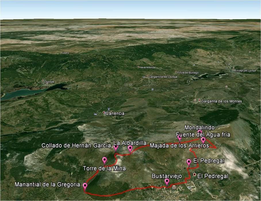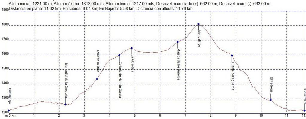 Itinerario: Dejamos el coche en el aparcamiento próximo al campo de fútbol. Comenzamos por una pista con sentido NO que nos lleva a la Torre de la Mina (restos de una mina de plata abandonada). Ascendemos por un sendero más estrecho y empinado que nos dirige a un llano desembocando en el Collado Abierto. Continuamos por la Majada de los Arrieros para encarar el definitivo repecho y llegar al Mondalindo / Cabeza del Cervunal.