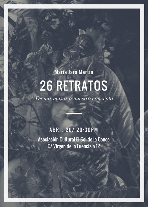 El próximo viernes 20 de abril a las 20:30 h, María Jara presenta su libro-exposición: 26 retratos (de mis musas a nuestro concepto). Fotografía y textos que contemplaremos, leeremos, comentaremos y compartiremos en una conversación colectiva con la autora.