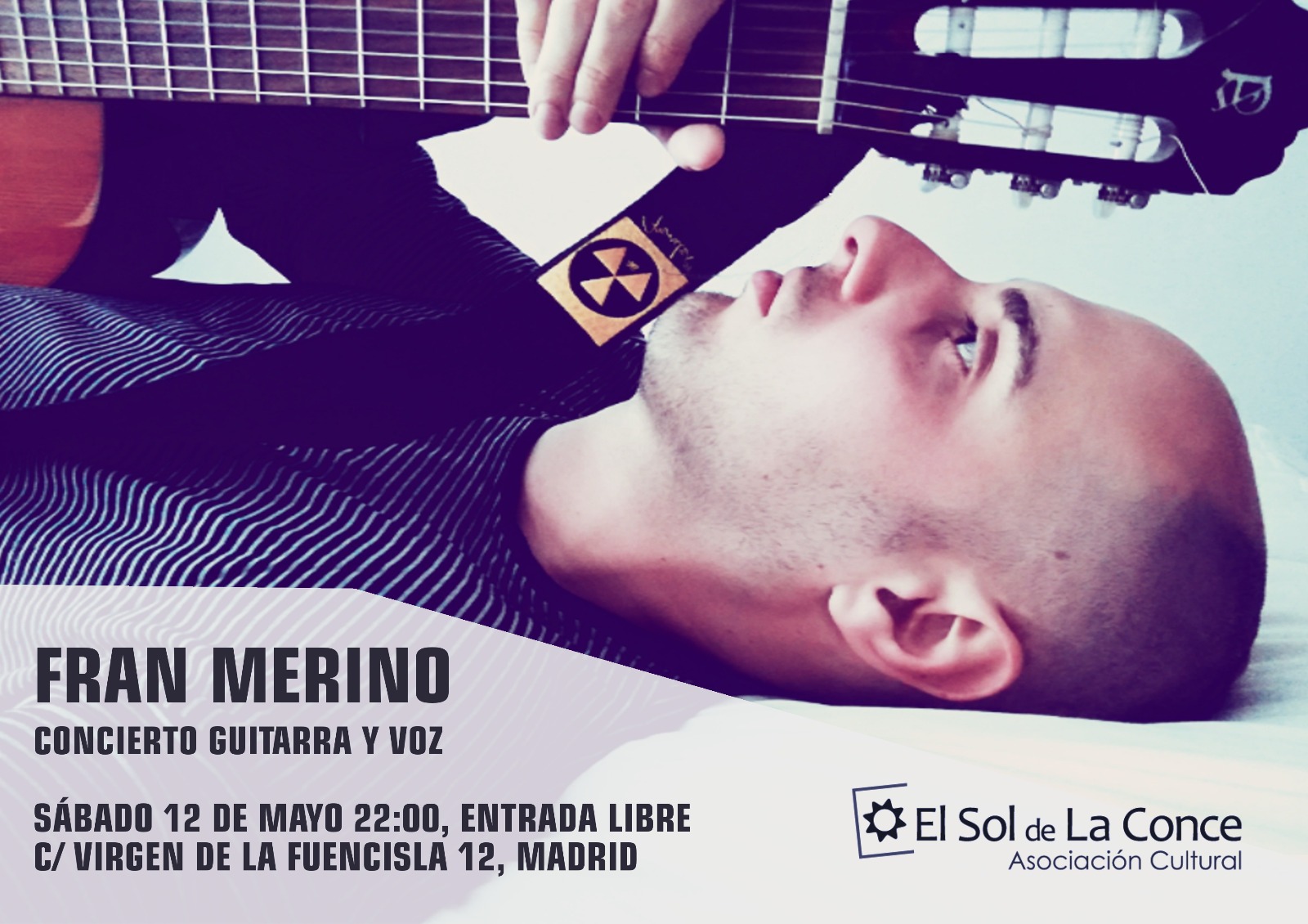 El próximo sábado, 12 de mayo a las 22 h, os invitamos al concierto de Fran Merino en el local de El Sol de la Conce (calle Virgen de la Fuencisla, 12)