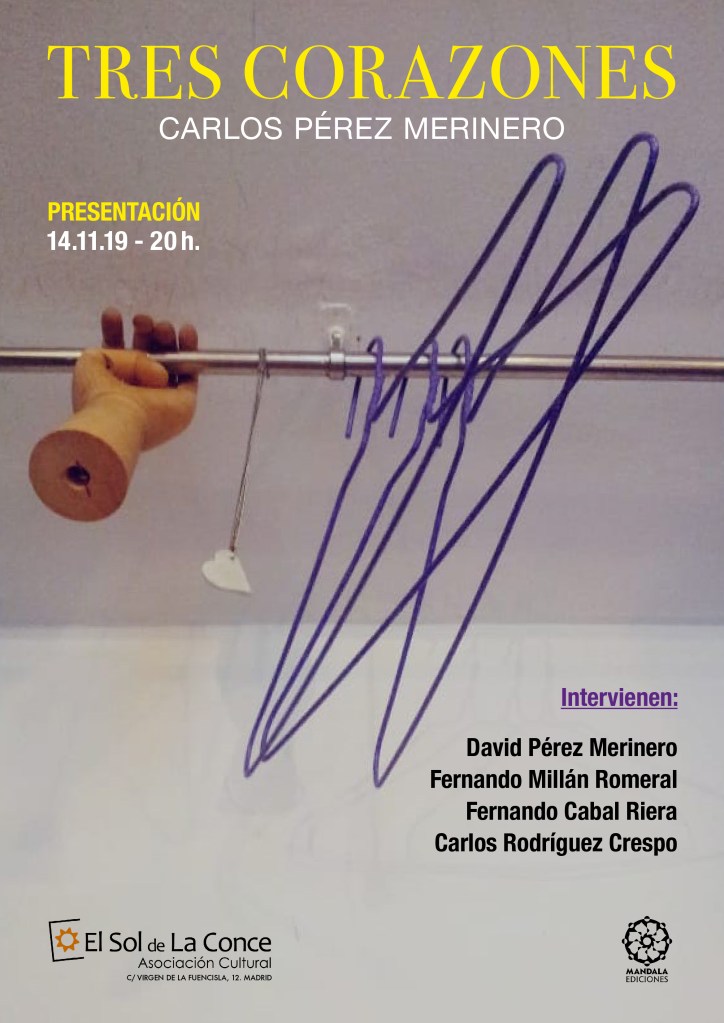 El jueves 14 de noviembre, a las 20 h, os invitamos a la presentación del libro Tres Corazones, de Carlos Pérez Merinero, con la presencia de su hermano David Pérez Merinero, Fernando Millán Romeral, Fernando Cabal Riera y Carlos Rodríguez Crespo.