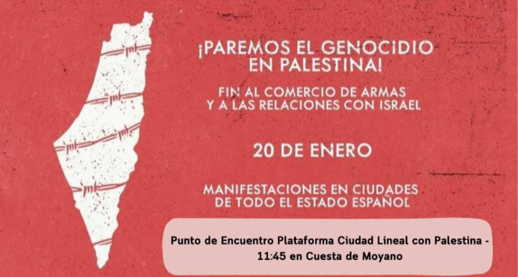 El sábado 20 de enero se celebrarán manifestaciones de apoyo al pueblo palestino en diferentes ciudades del estado español.