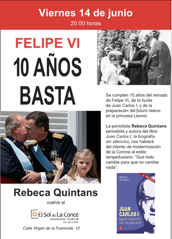 Rebeca lleva muchos años investigando a la familia real española. En 2016 publicó un libro biográfico sobre el rey emérito: «Juan Carlos I, la biografía sin silencios». En esta ocasión nos hablará de la operación de modernización de la monarquía al estilo lampedusiano: «cambiarlo todo para que no cambie nada«. Nos contará algunas de las cosas sucedidas en estos 10 años de reinado y de la tramoya que acompaña a la Casa Real.