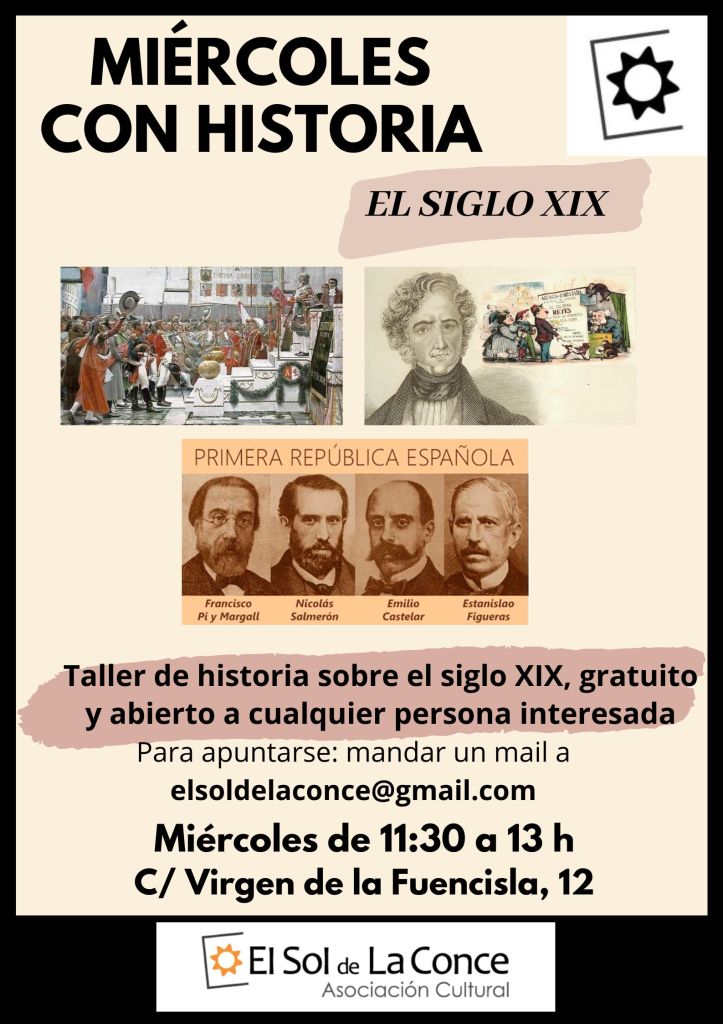 Se trata de un taller semanal, las mañanas de los miércoles, de 11:30 a 13:00, impartido por un profesor de historia que, en esta primera etapa, se centrará en analizar el siglo XIX.