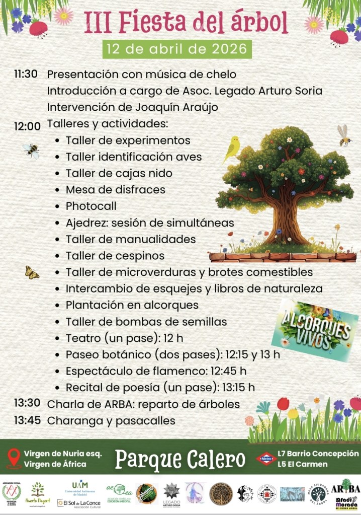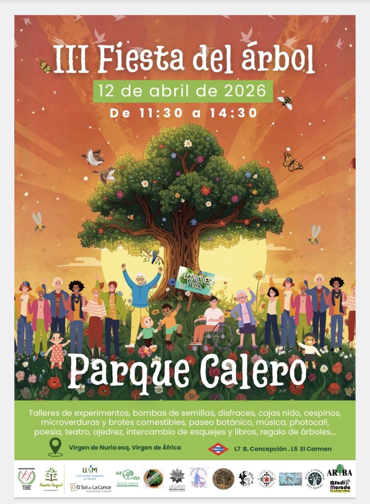Os recordamos que el próximo domingo 12 de abril de 11:30 a 14:30 h, si el tiempo lo permite, celebraremos la III Fiesta del Árbol en el parque Calero (Virgen de Nuria esq. Virgen de África). Aquí os dejamos el programa para que veáis todas las actividades.