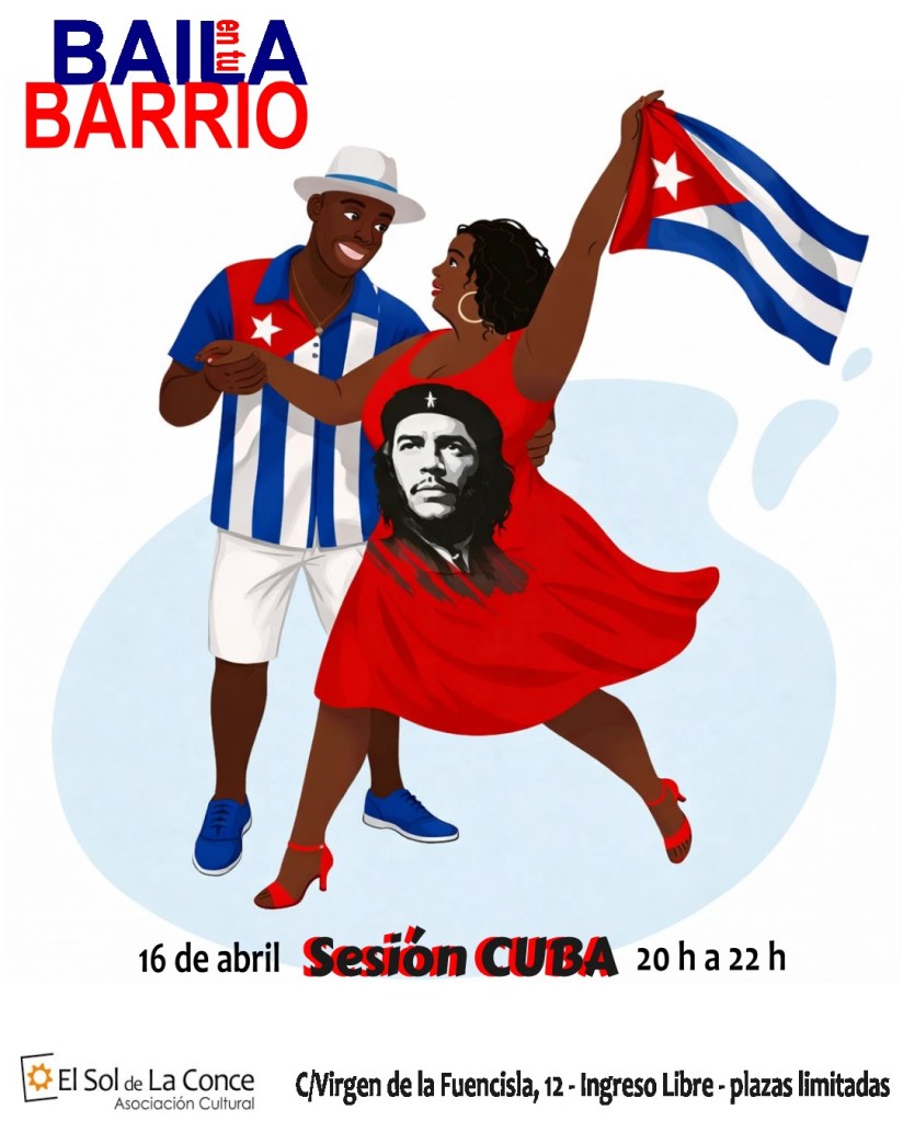 Este jueves 19 de abril del 2026 a las 20:00, os invitamos a disfrutar de la fiesta número 14 de ¡Baila en tu barrio! sesión: “CUBA”