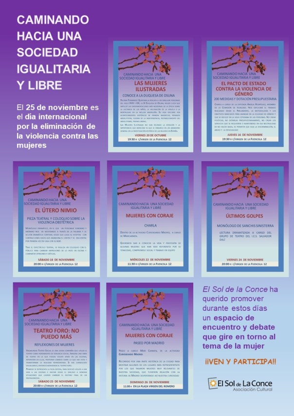 Por ello, El Sol de la Conce ha querido promover durante estos días un espacio de encuentro y debate que gire en torno al tema de la mujer, y que nos ayude a conocer las claves de las situaciones de desigualdad que se generan cotidianamente en nuestra sociedad.