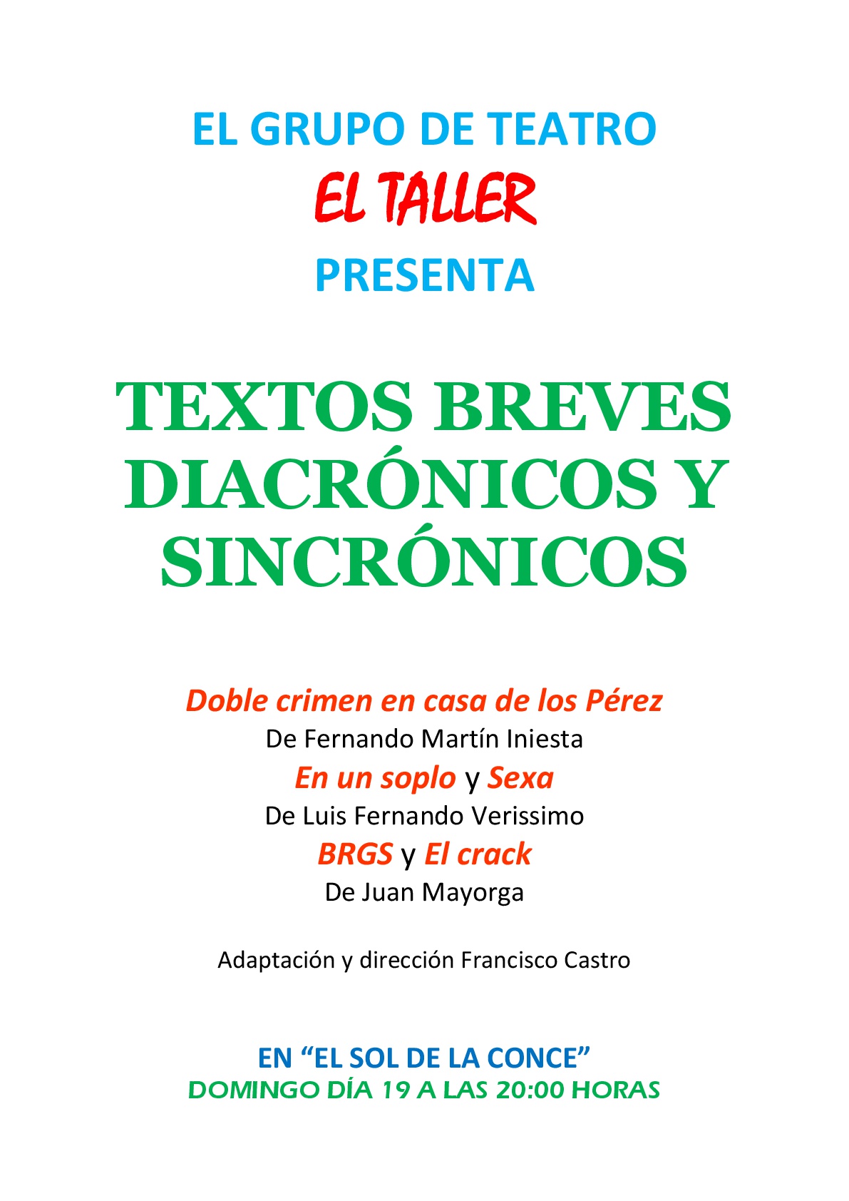 El grupo de teatro El Taller presenta: «Textos breves diacrónicos y sincrónicos».