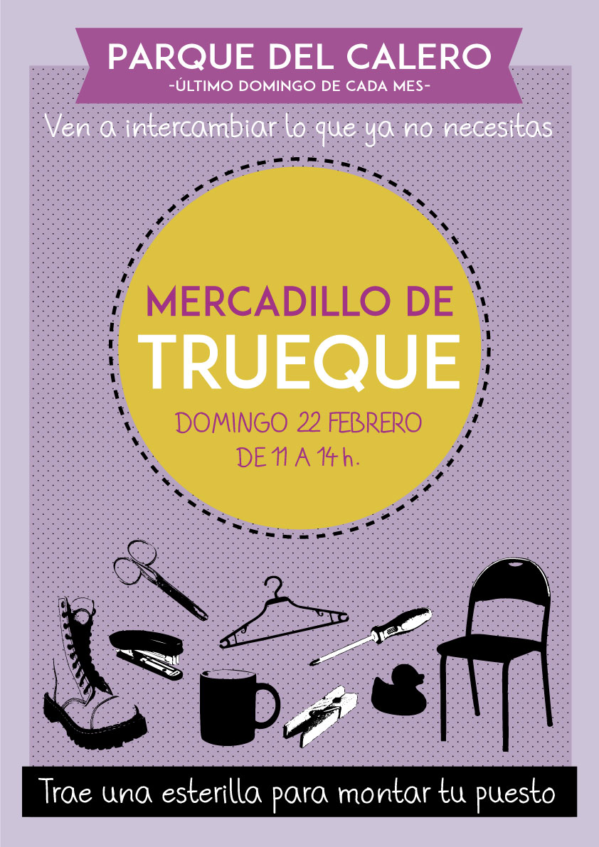 Domingo 29 de marzo. Como todos los últimos domingos de cada mes, el trueque en el Parque Calero, al lado de la zona infantil cercana al auditorio, a partir de las 11:30 h. Si llueve, nos trasladamos a los soportales de la plaza de la Virgen del Romero.