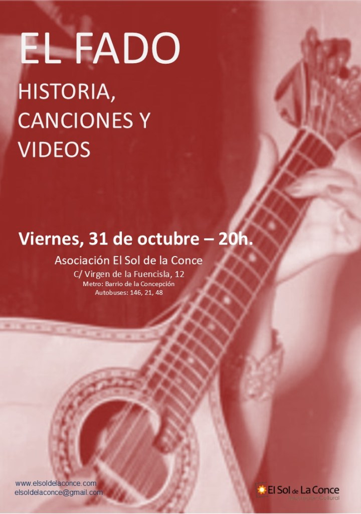 El viernes 31 de octubre a las 20:00, nuestro compañero Juan, lusófilo entusiasta de las culturas portuguesa y brasileña, nos va a contar todo lo que sabe (que es mucho) sobre el fado, típica muestra de la cultura musical portuguesa, plena de sentimiento y de sensibilidad
