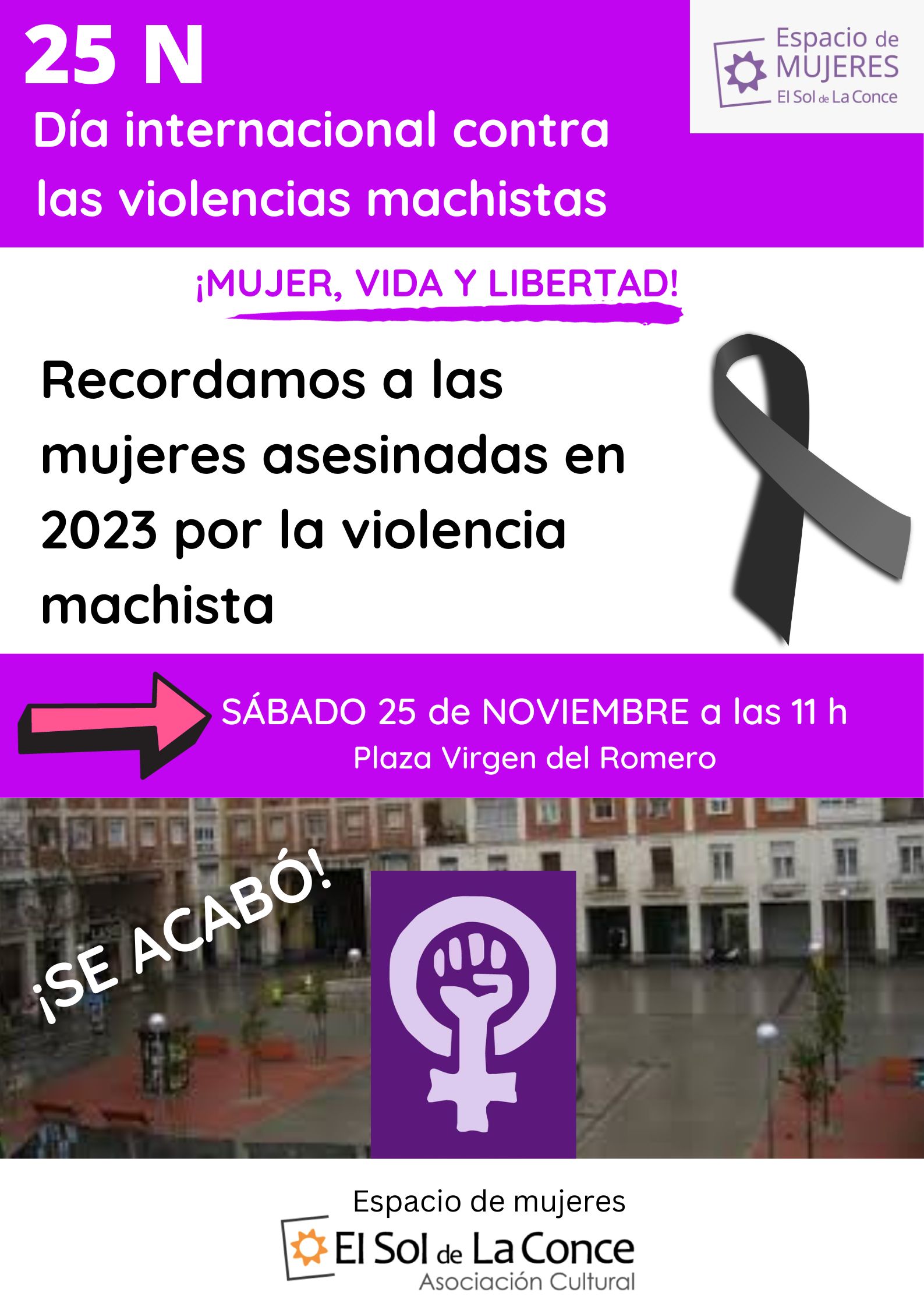 - 11 h, en la Plaza Virgen del Romero: 25 N: Acto de homenaje a las mujeres asesinadas en 2023