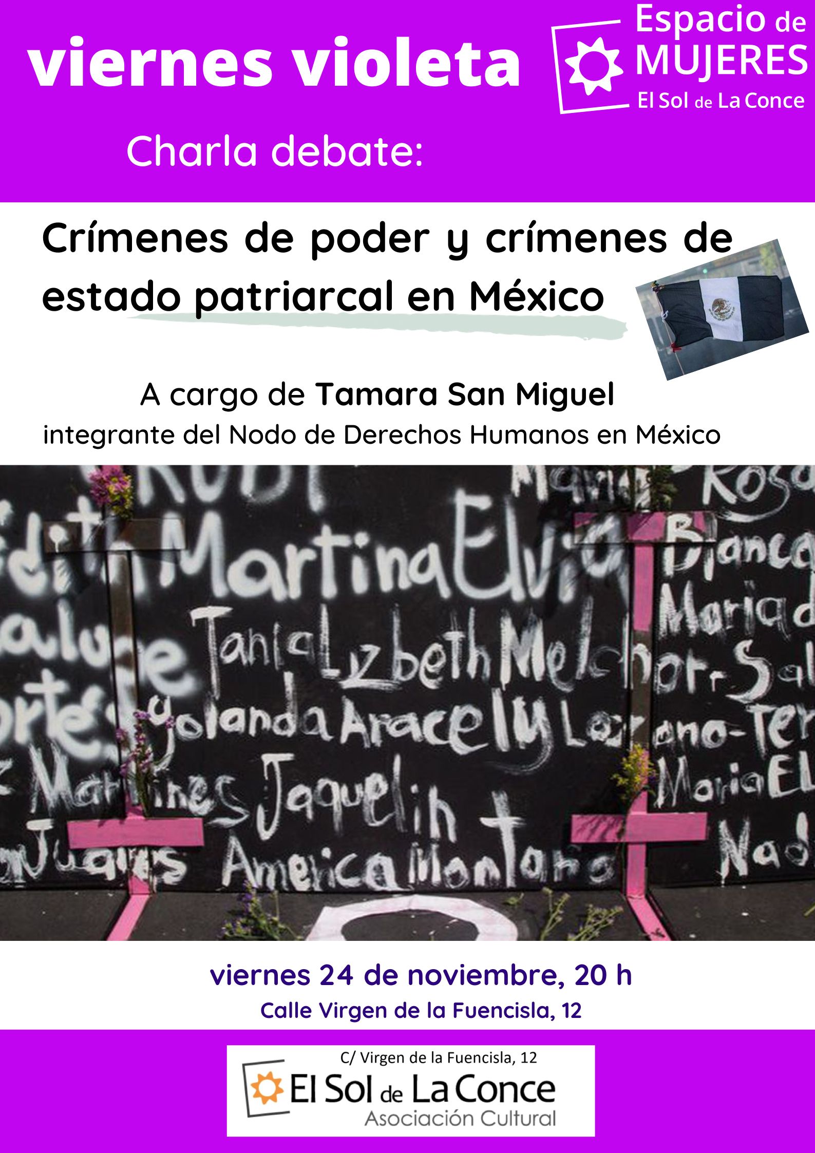 Viernes 24 de noviembre a las 20 h: Viernes violeta: «Crímenes de poder y crímenes de estado patriarcal en México»
