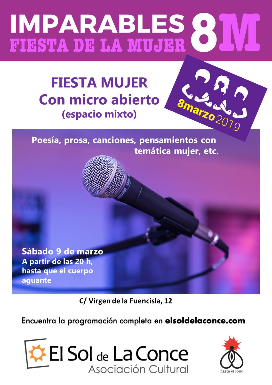 Después de la jornada de huelga del 8 M, desde El Sol de la Conce seguimos reclamando la igualdad entre hombres y mujeres en todos los aspectos de la vida y la convivencia, y no hay mejor forma de hacerlo que avanzar unidas y unidos celebrando una fiesta.