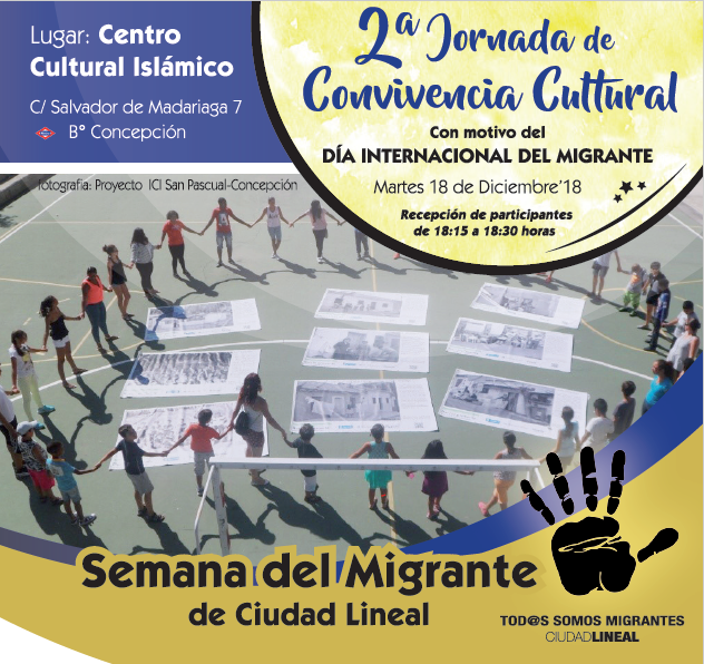 El martes 18 de diciembre, con motivo del Día Internacional del Migrante, se celebrará una Jornada de Convivencia Cultural en el Centro Cultural Islámico (C/ Salvador de Madariaga, 7).