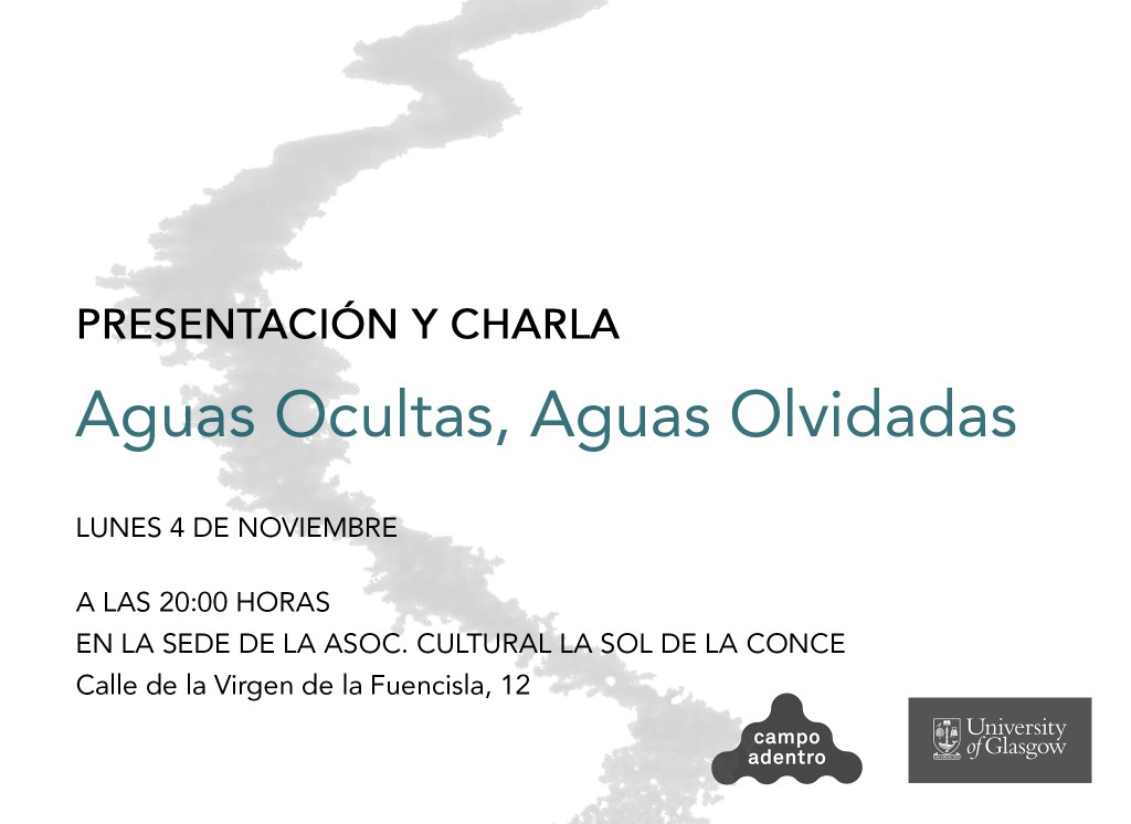 El próximo lunes 4 de noviembre, a las 20 h, os invitamos a la presentación del proyecto Aguas Ocultas, Aguas Olvidadas, un proyecto de arte público sobre las aguas ocultas y olvidadas de los Barrios de la Concepción y Quintana, y sobre la relación cambiante de los vecinos con el agua.