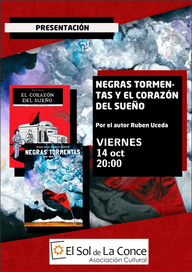 El próximo viernes 14 de octubre presentaremos los cómics «Negras tormentas» y «El corazón del sueño» con la participación del autor, Rubén Uceda. Acotados ambos en tiempos de guerra y de sueños de libertad, hablaremos con Rubén sobre los temas propuestos, los sujetos implicados en las historias, así como las vicisitudes que se encontraron en una de las últimas revoluciones proletarias del siglo XX.