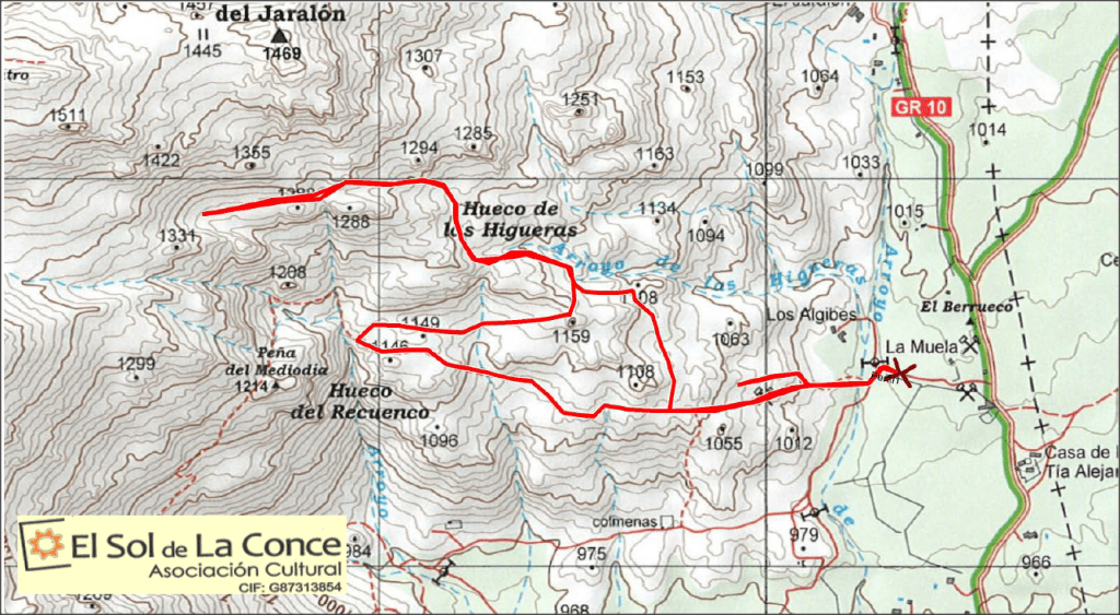 Recorrido circular. El canto del Berrueco – Hueco de las Higueras – Choza de la Peligra – Hueco del Recuenco – Las Mesas – La Raja – El Berrueco.