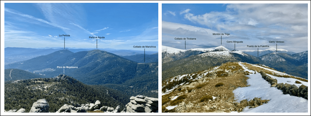 A unos 100m de donde hemos dejado el coche, cogemos la senda PR4 llamada Camino Viejo de Segovia. Seguimos por la calzada romana hasta llegar a un espacio abierto entre los árboles, cruzamos la carretera y seguimos por la pista un poco pedregosa. Un poco más adelante la señalización se pone blanca y amarilla. Después de un breve ascenso, giramos a la derecha y ascendemos por una pendiente fuerte. Por este camino llegamos al Puente de el Medio. Cruzamos el puente, luego giramos a la izquierda hacia arriba, hasta llegar al Puerto de la Fuenfría. Una vez allí, tomamos la pista hacia la izquierda, señalizada con color blanco y rojo de la GR-10, después llegaremos al Collado de Marichiva, donde pasamos por la verja a la derecha. En este punto estaremos en Segovia. Una vez pasada la verja cogemos la senda de la izquierda, hacia arriba. Seguimos este sendero hasta llegar al Cerro Peña del Águila (2009m). bajaremos por el mismo camino que hemos subido hasta el Collado de Marichiva. En la vereda Poyal de la Garganta, siguiendo los puntos rojos de los árboles, bajamos hasta el aparcamiento.