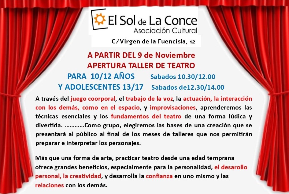El próximo miércoles 14 de junio a las 19:30 horas, el Taller de Teatro del Sol de la Conce, estrena una nueva obra en el Centro Cultural Príncipe de Asturias (Ciudad Lineal).