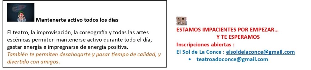 El próximo miércoles 18 de diciembre a las 19:00, el Taller de teatro del El Sol de la Conce representará de nuevo la obra de teatro «Cambias o cambio». Escrita y dirigida por Adela Suárez, incorpora muchas novedades con respecto a la que representaron en junio pasado. ¡No te la pierdas!