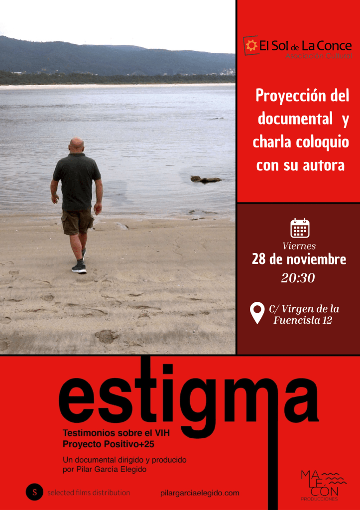 El próximo viernes 28 de noviembre a las 20:30 h, con motivo del Día Mundial del Sida que se celebra el día 1 de diciembre, os invitamos a la proyección de documental ESTIGMA, dirigido y producido por Pilar García Elegido.