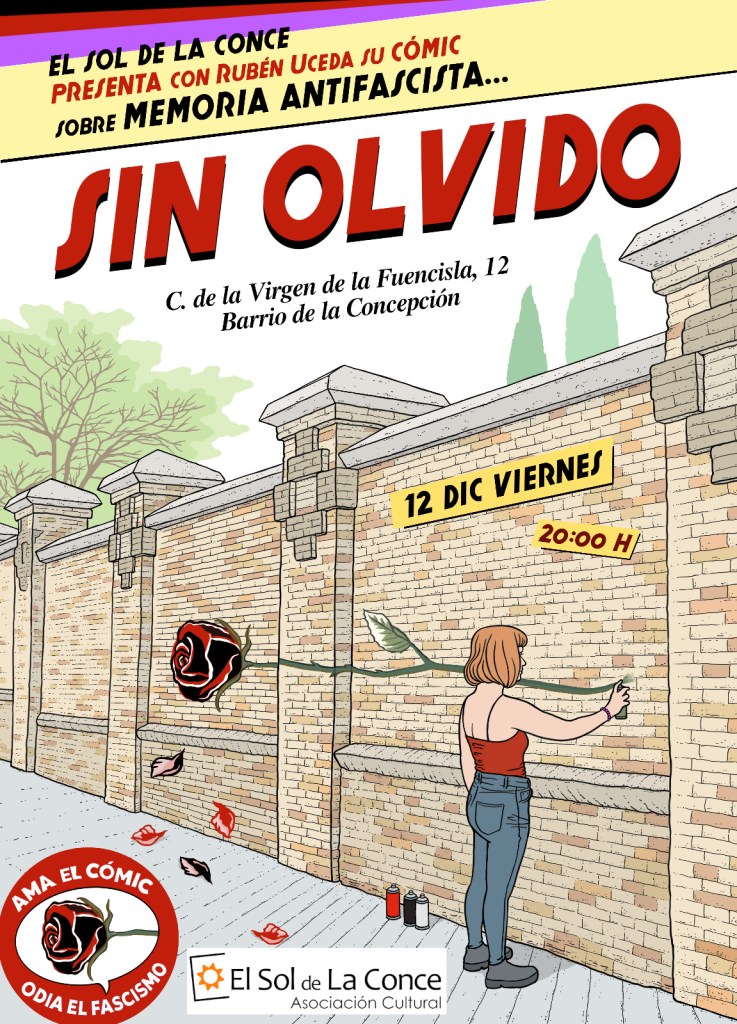 El próximo viernes 12 de diciembre a las 20:00, Rubén Uceda vuelve al Sol de la Conce a presentarnos su nuevo trabajo: «Sin olvido. Un viaje por la memoria antifascista«, su décima novela gráfica.